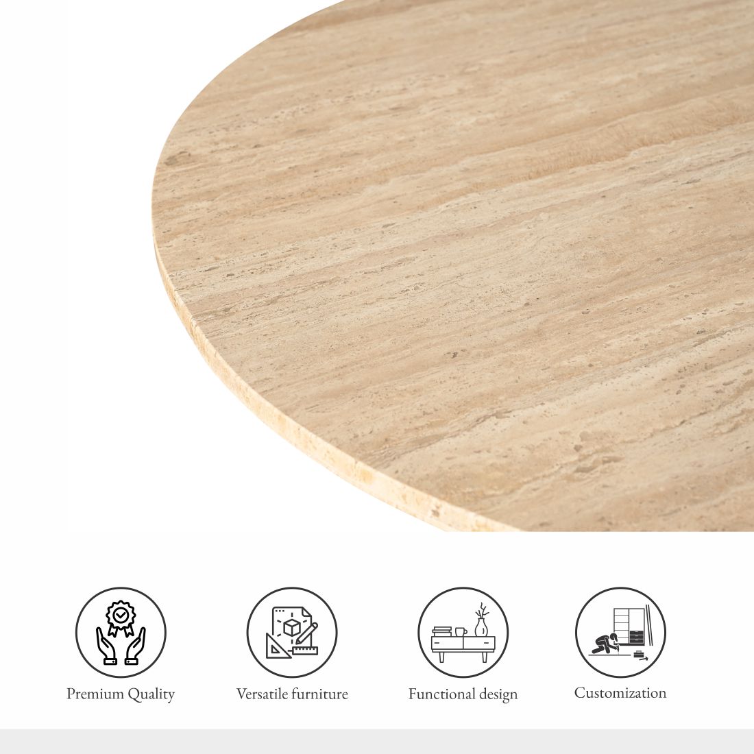 Elevate your dining area with our meticulously designed dining table, featuring a luxurious Italian Travertine marble. This exquisite piece effortlessly combines timeless elegance and functional design, making it the ideal centerpiece for your dining room. Whether it’s everyday family meals or special occasions, this table offers a touch of sophistication and durability, ensuring it becomes a statement of your refined taste and lasting quality in your home. Crafted with precision, it not only serves as a practical surface but also as a conversation starter for gatherings and a symbol of your discerning style.